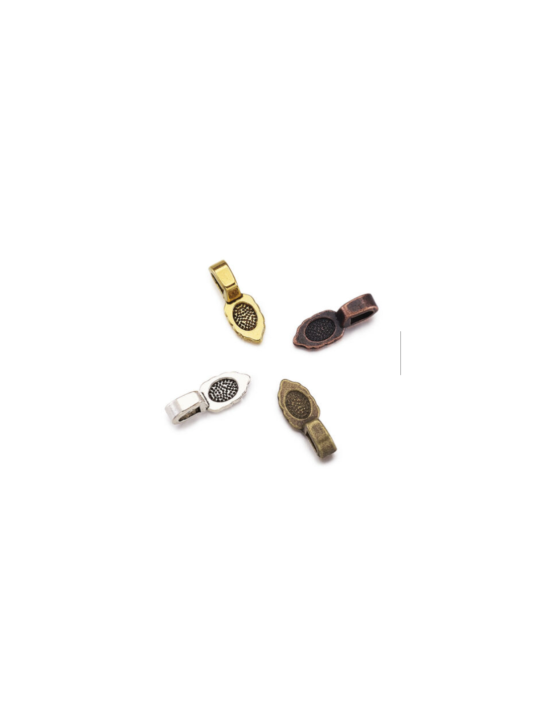 Agatatoare pandantiv cu suport model frunza, aspect bronz antichizat. Ideal pentru pentru margele sau pandantive ce urmeaza a fi lipite.