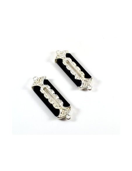 Link acrilic negru/argintiu dreptunghiular 46x15mm