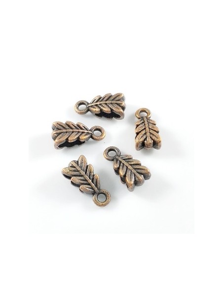 Agatatoare metalica pentru pandantiv, aspect cupru, model frunza 14 mm, interior 6.5x4.5mm.