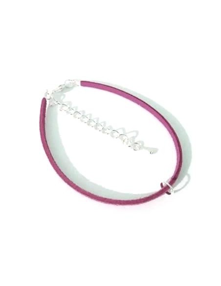 Baza bratara faux suede plat, culoare mov cu inchizatoare si lant prelungitor placate cu argint.