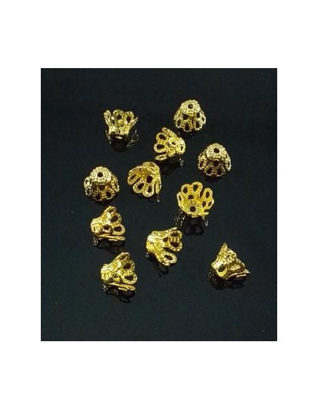 Capacele decorative aurii model conic filigran ~7x5 mm, orificiu 1 mm.