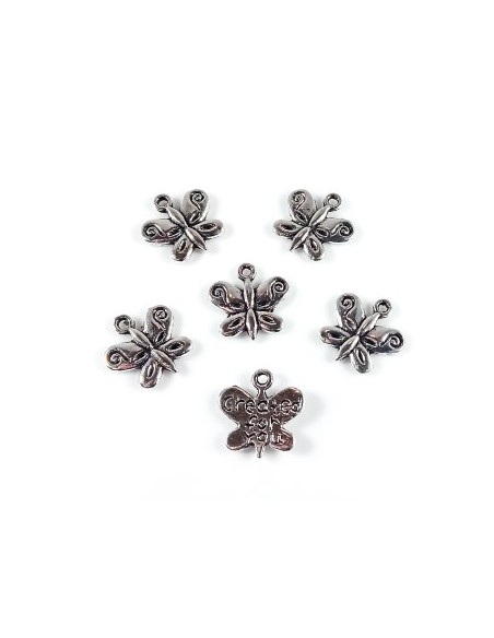 2xCharm argintiu antichizat fluture cu dedicatie 13 mm
