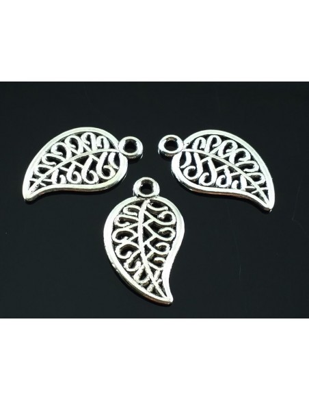 Charm frunza filigran argintiu antichizat 10 x 19 mm.