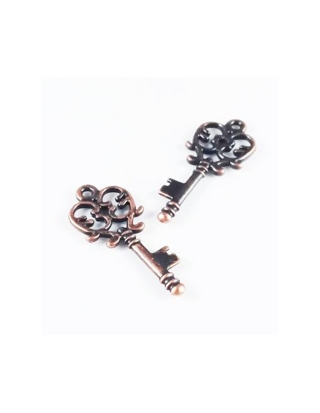 Pandant charm metalic cupru antichizat cheie 33x 14 x 2 mm (2 buc)