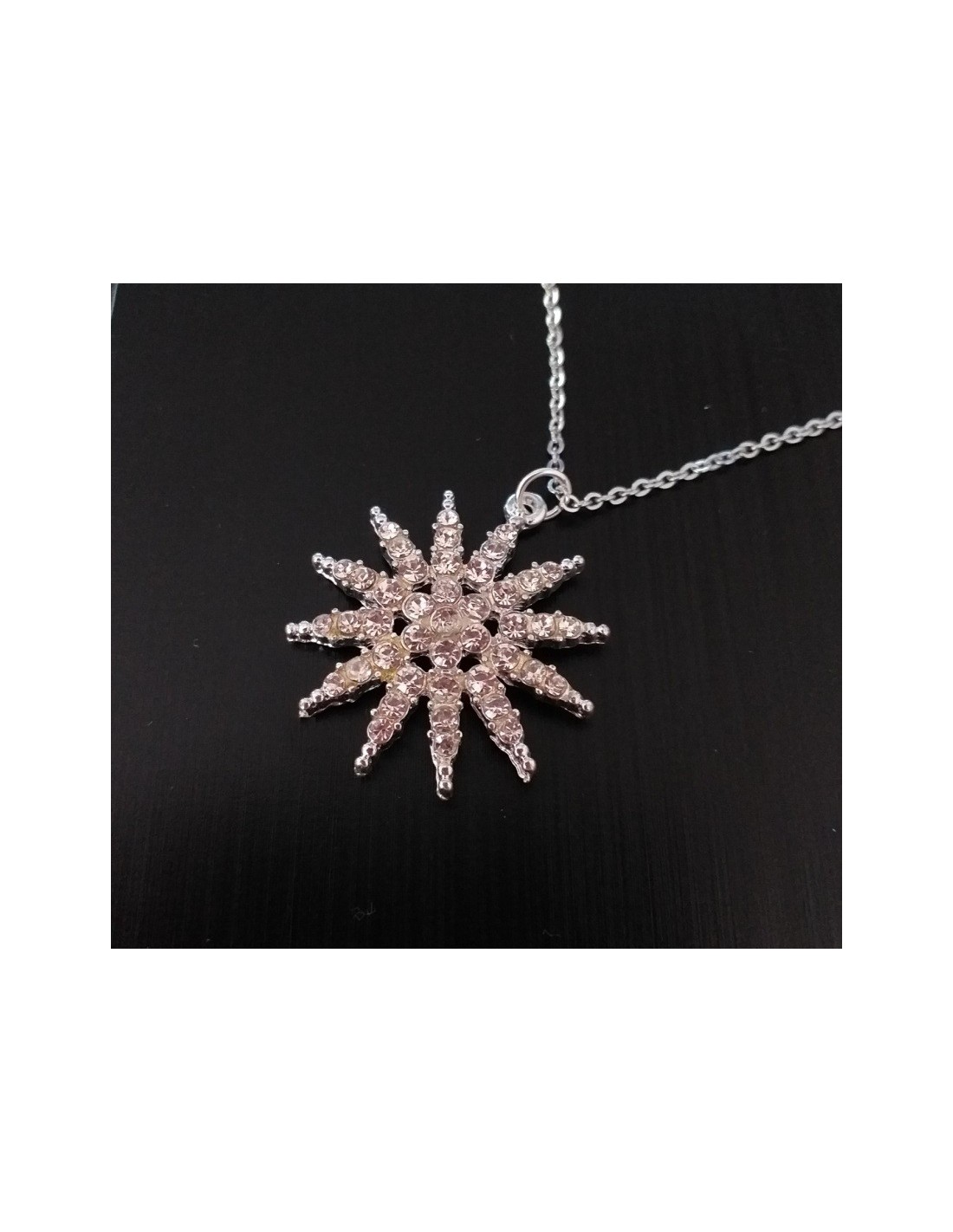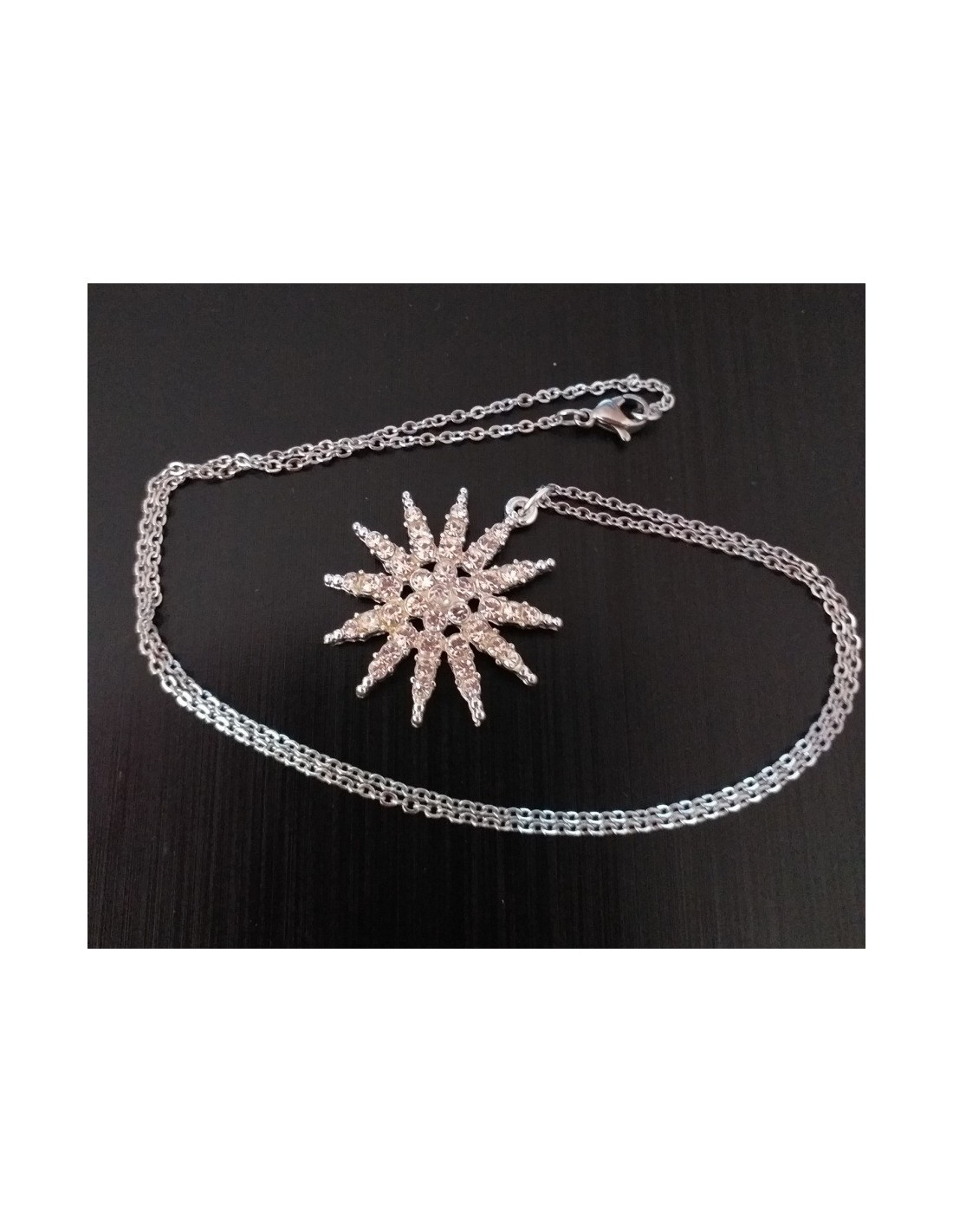 Colier argintiu pandantiv stea 30 mm cu montura de zirconii albe .