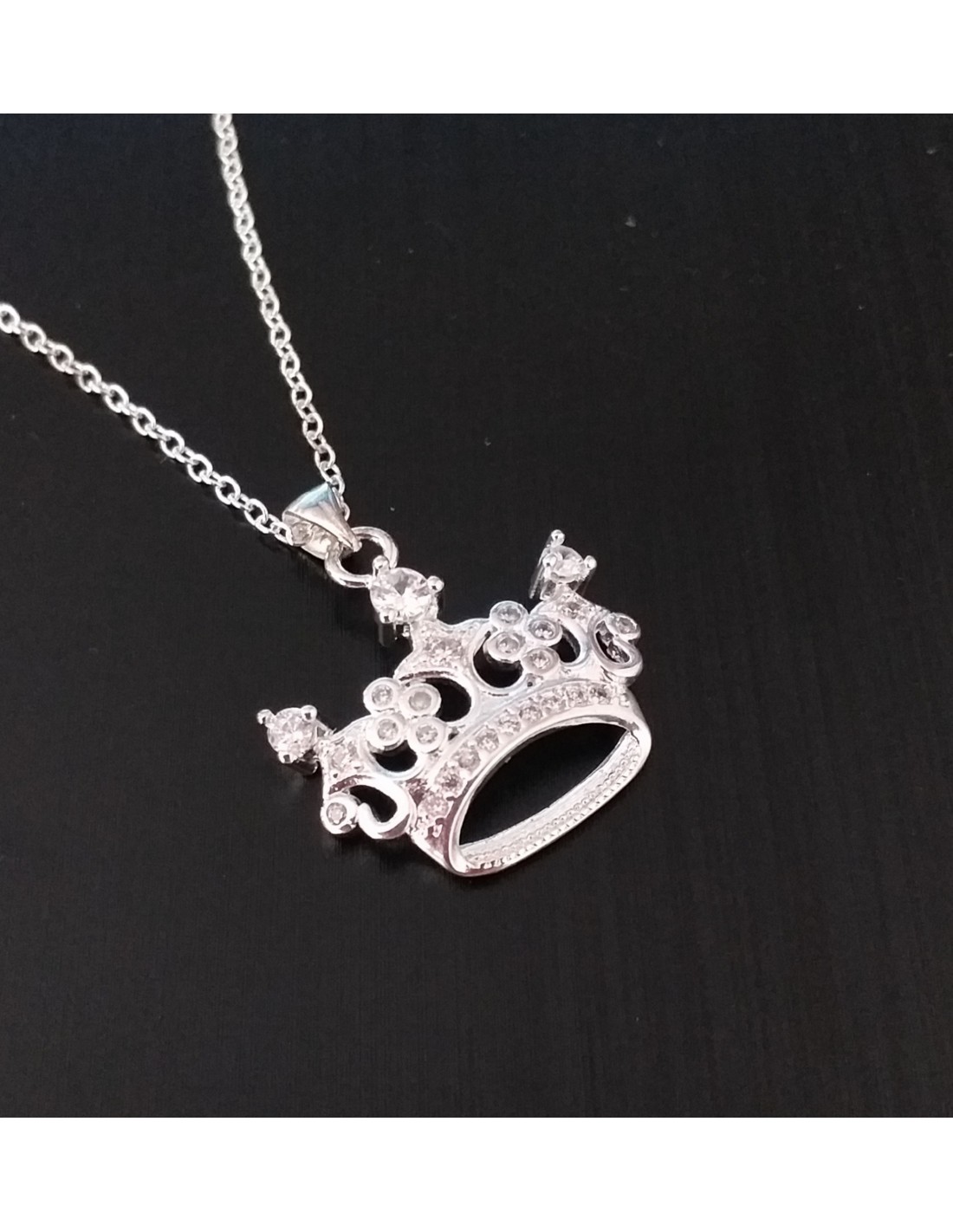 Colier argintiu cu pandantiv coronita montura zirconii albe