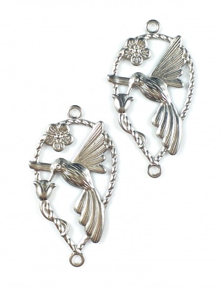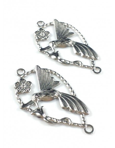 Conector/link otel inoxidabil argintiu model pasarea colibri.
