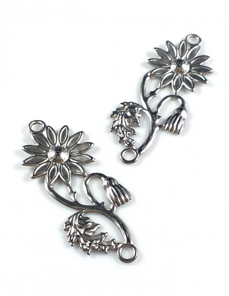 Conector otel inoxidabil argintiu floare 39x16mm