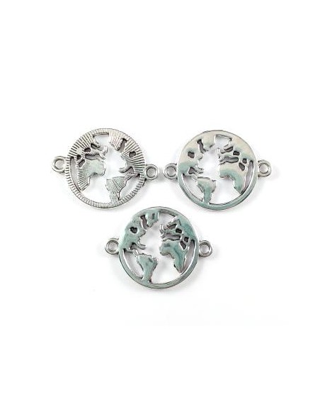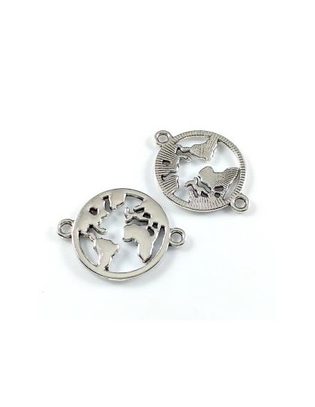 Link (conector) metalic, model harta lumii argintiu antichizat 26x19 mm.