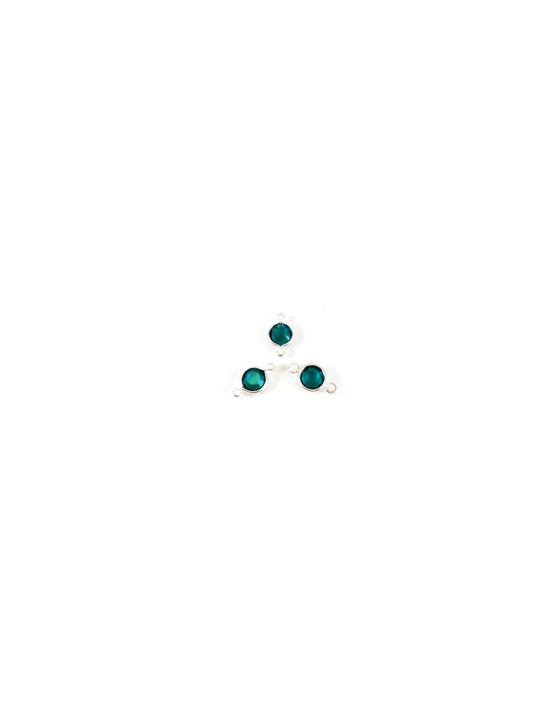 Link metalic argintiu deschis cu aplicatie cristal verde smarald 12x7mm.