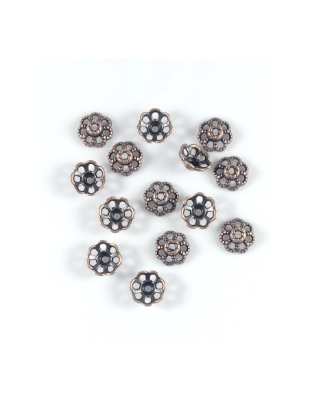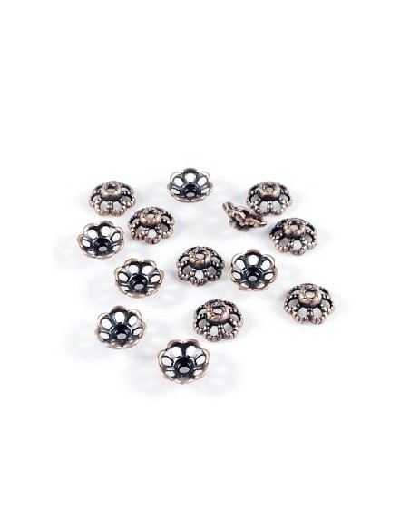 Capace metalice decorative cuprate, model floare 9x4 mm, orificiu 1 mm.