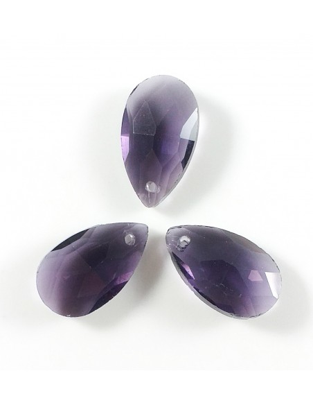 Pandantiv sticla lacrima fatetata 22x13x7mm, gaura 1 mm.