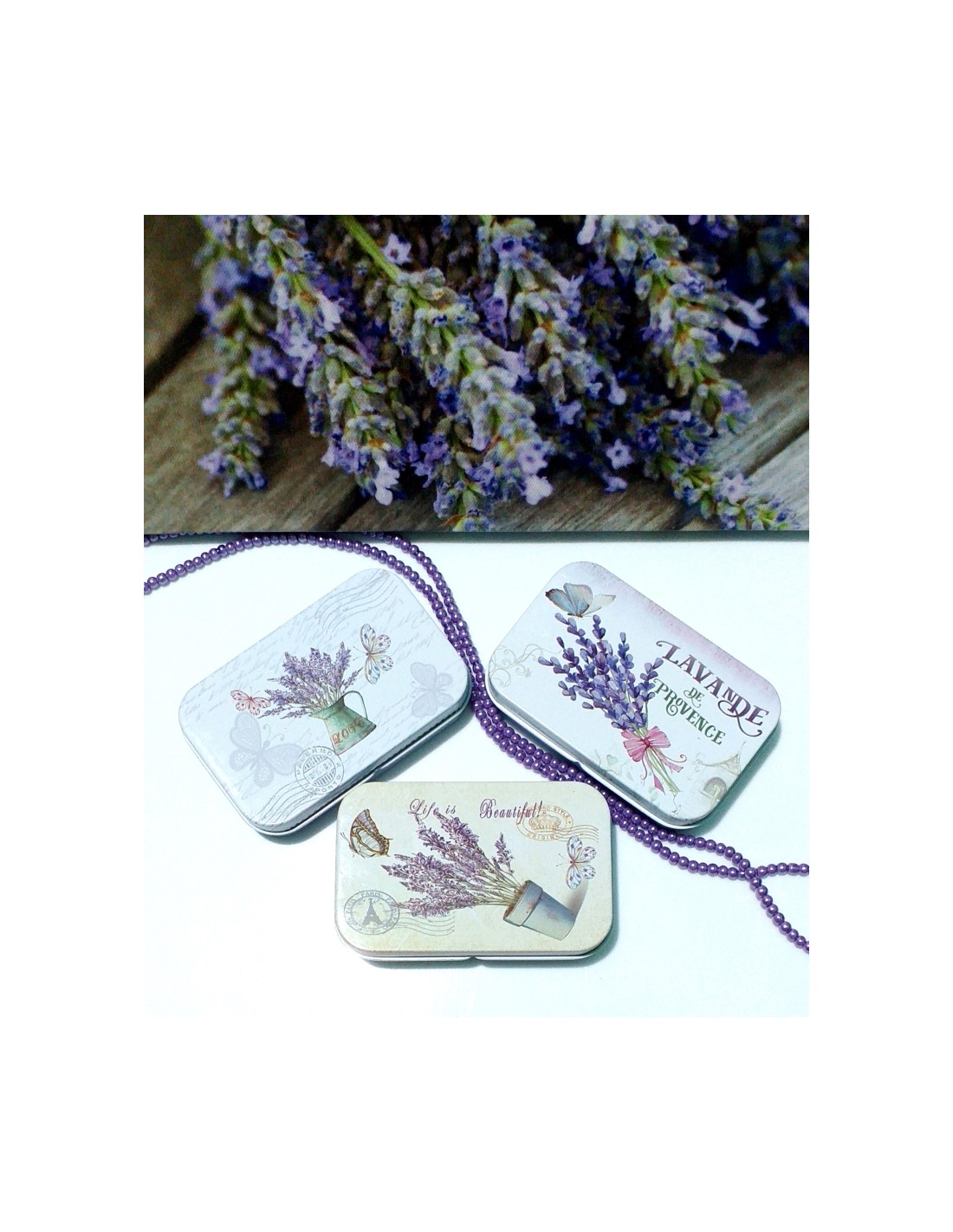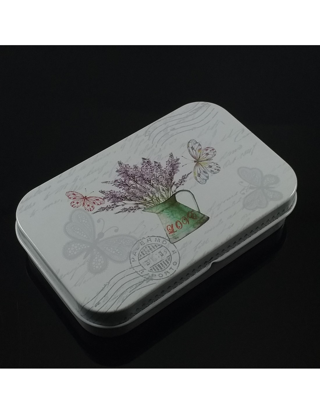Cutie metalica dreptunghiulara decor lavanda 95x60x20mm