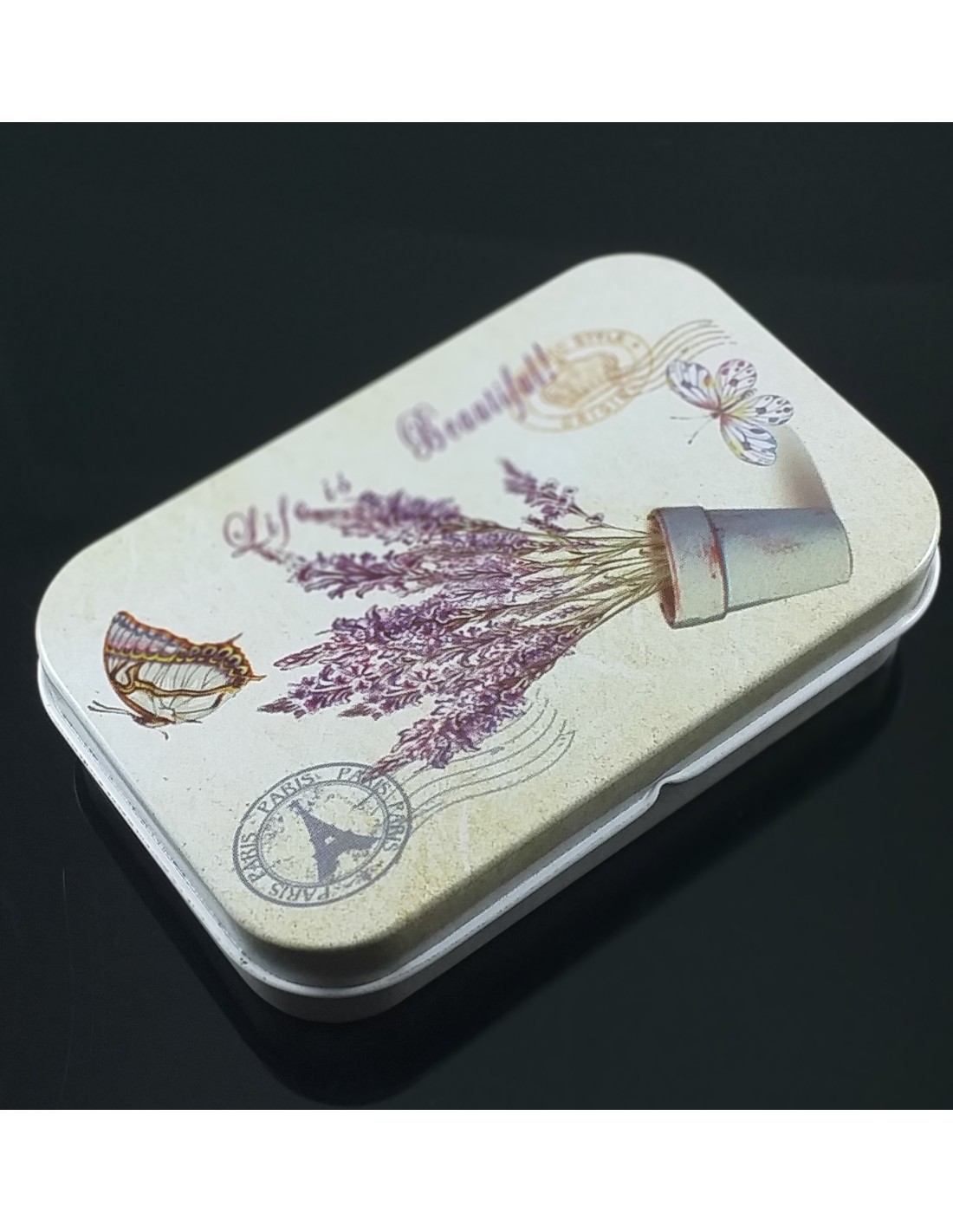 Cutie metalica dreptunghiulara decor lavanda 95x60x20mm
