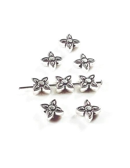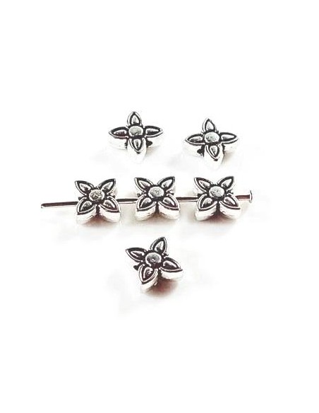 Distantiere floare argintiu antichizat 9x4mm, gaura 1 mm.