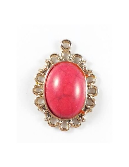 Pandantiv auriu oval cu aplicatie howlit rosu sintetic.