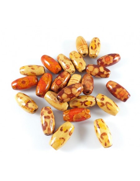 Mix margele lemn tubulare cu model 15 x 7 mm (10 buc.)