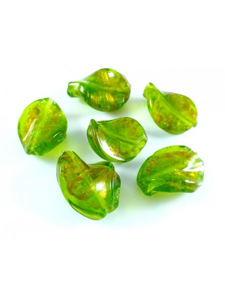 Margele sticla lampwork (de lampa), lucrate manual, pulbere aurie, model rasucit.