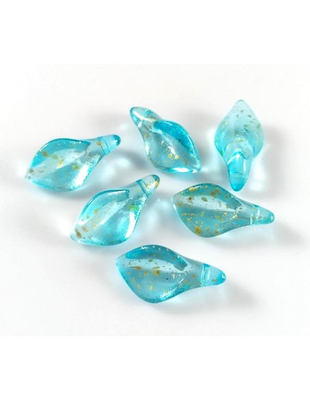 2 Margele sticla floare cala cu glitter 18 x 9 x 5 mm