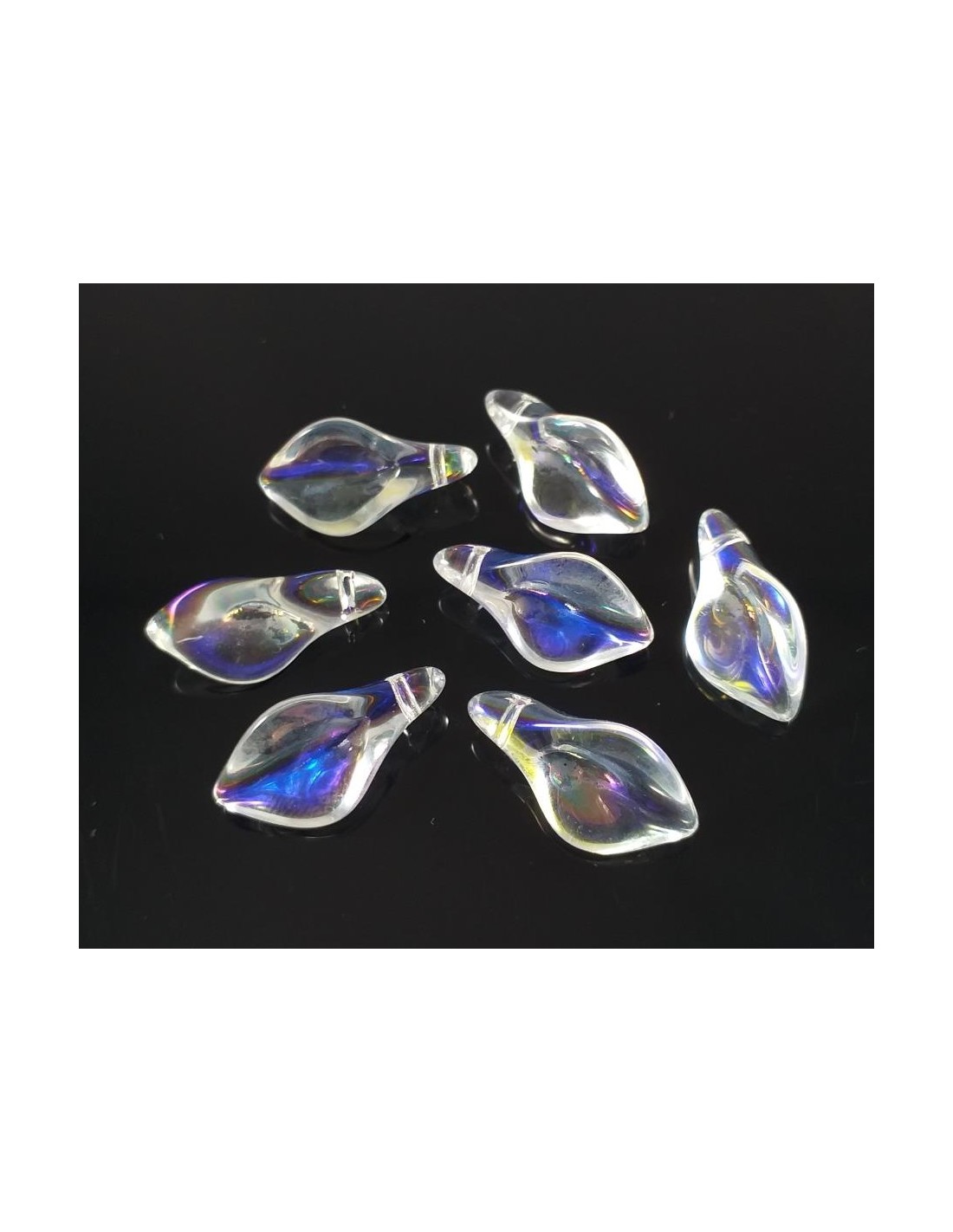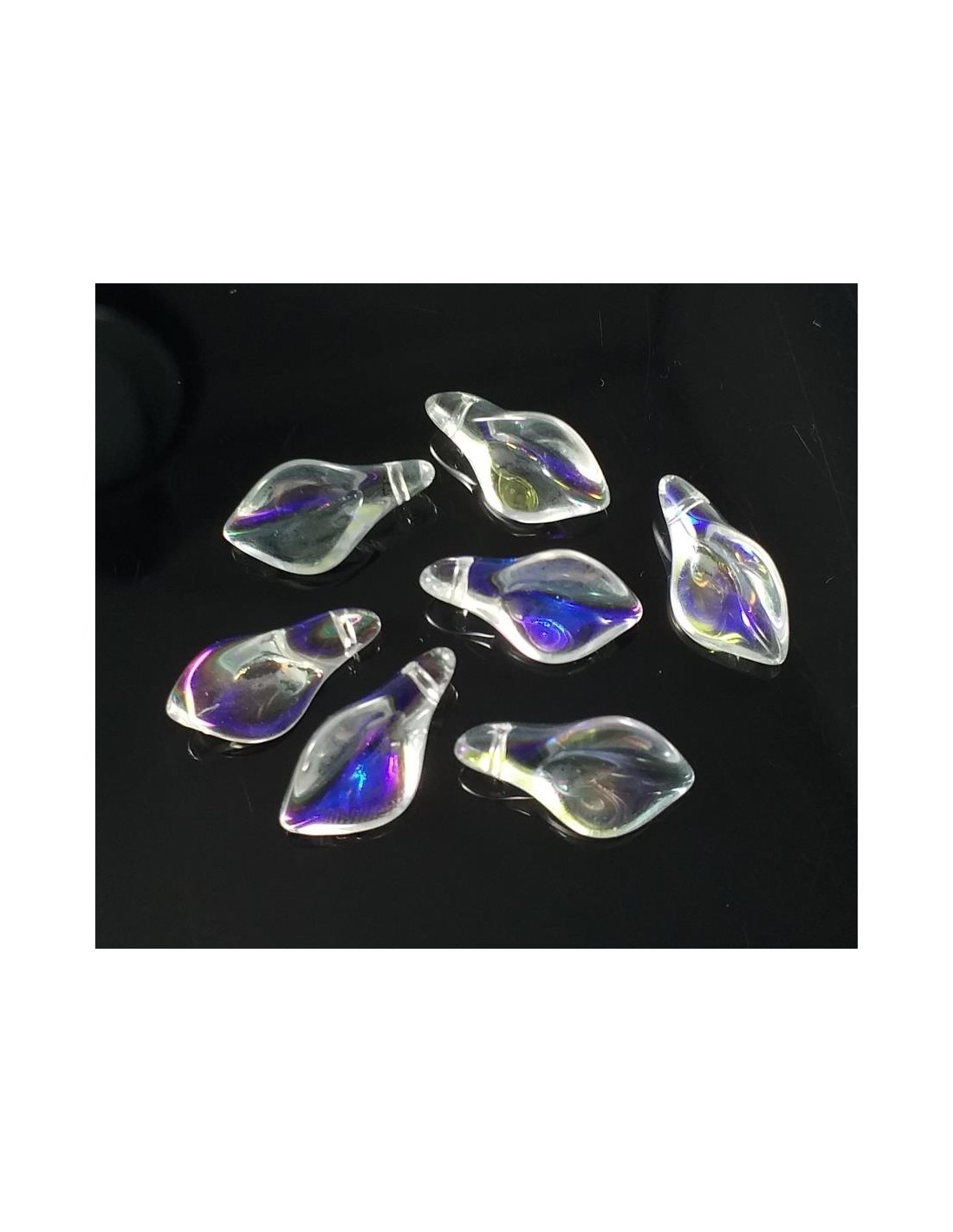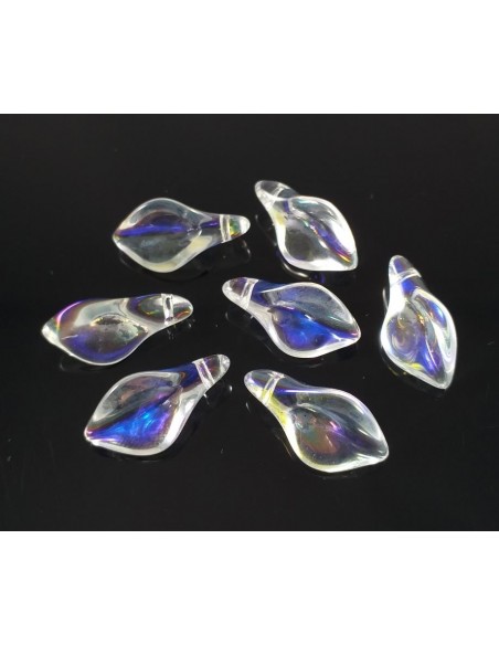 2 Margele sticla floare cala cu glitter 18 x 9 x 5 mm