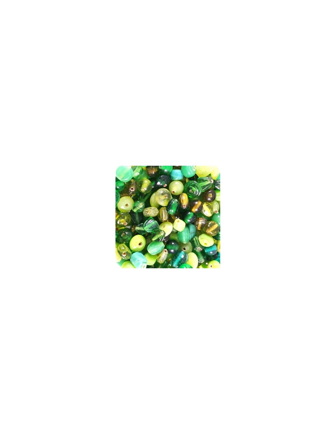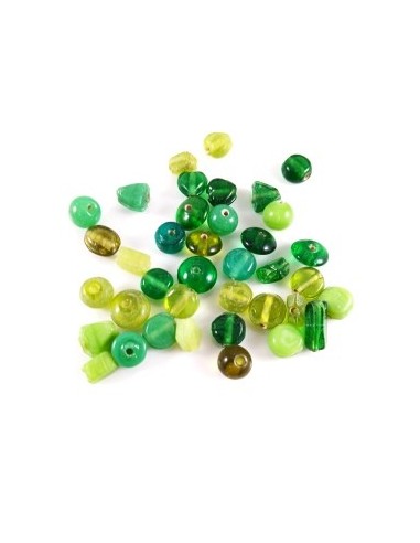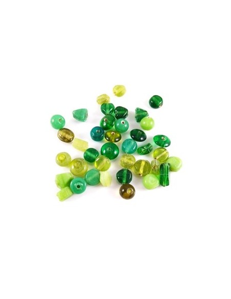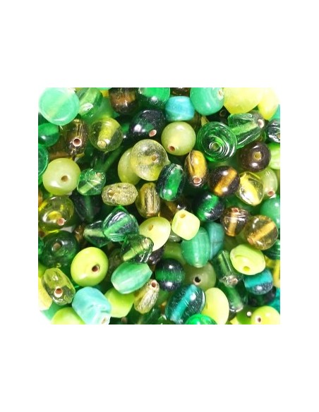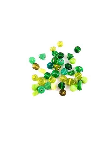 Margele sticla diverse forme nuante verzi 5-8mm.