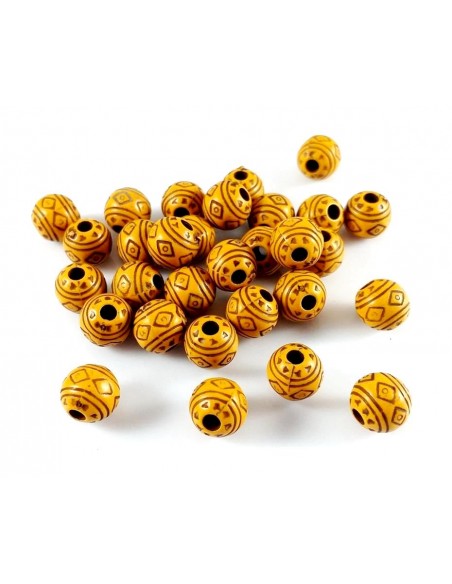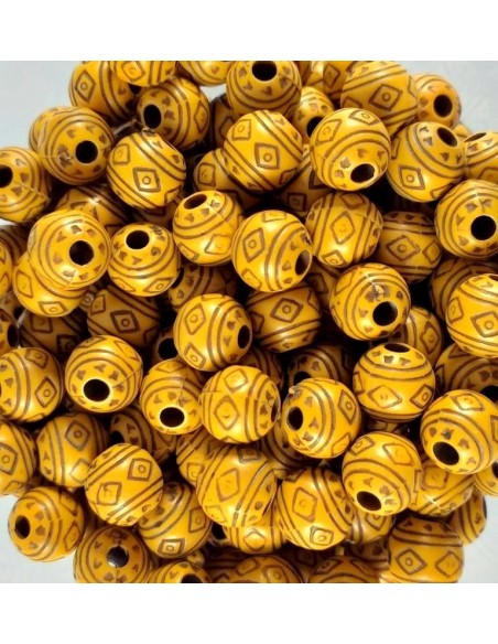 Margele ovale model Peru imitatie lemn. Culoare galben mustar.