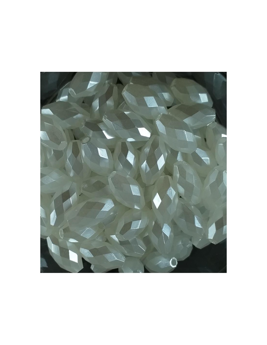 Margele albe sidefate forma ovala fatetata.