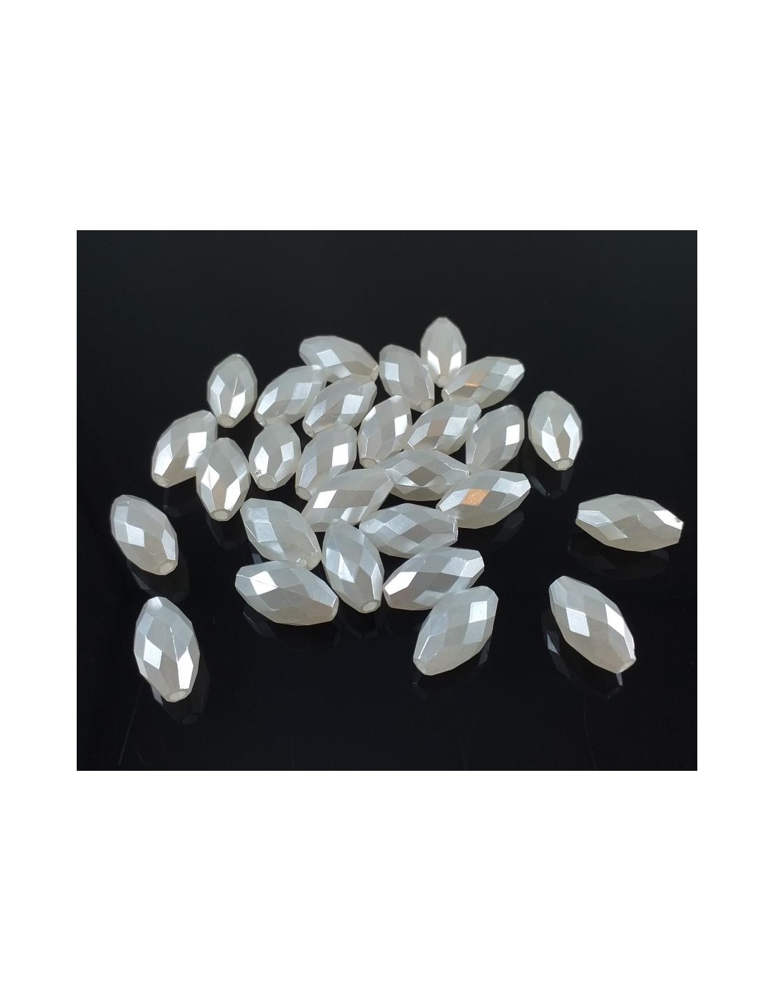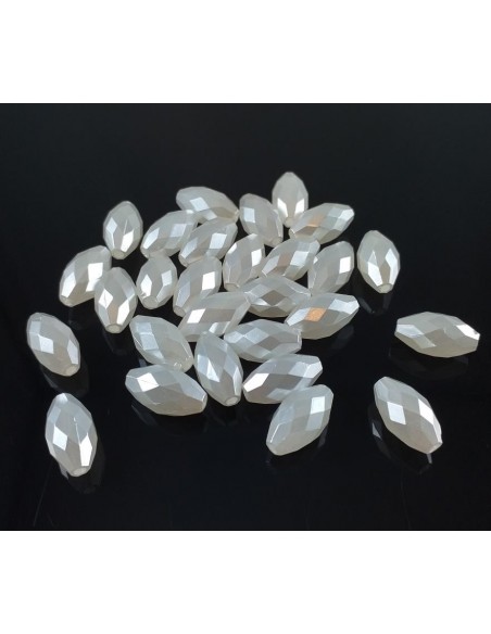 10 Margele albe sidefate ovale fatetate 13 x 7 mm