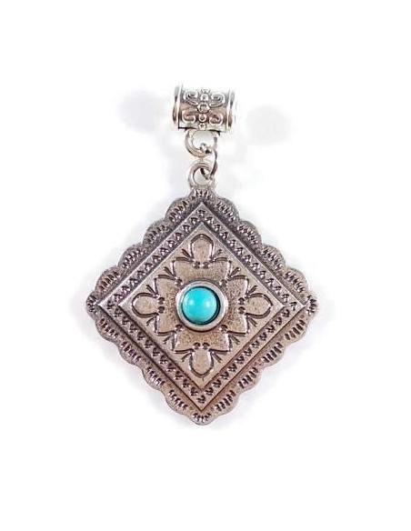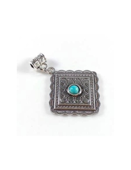 Pandantiv metalic argintiu cu turcoaz 40x23mm