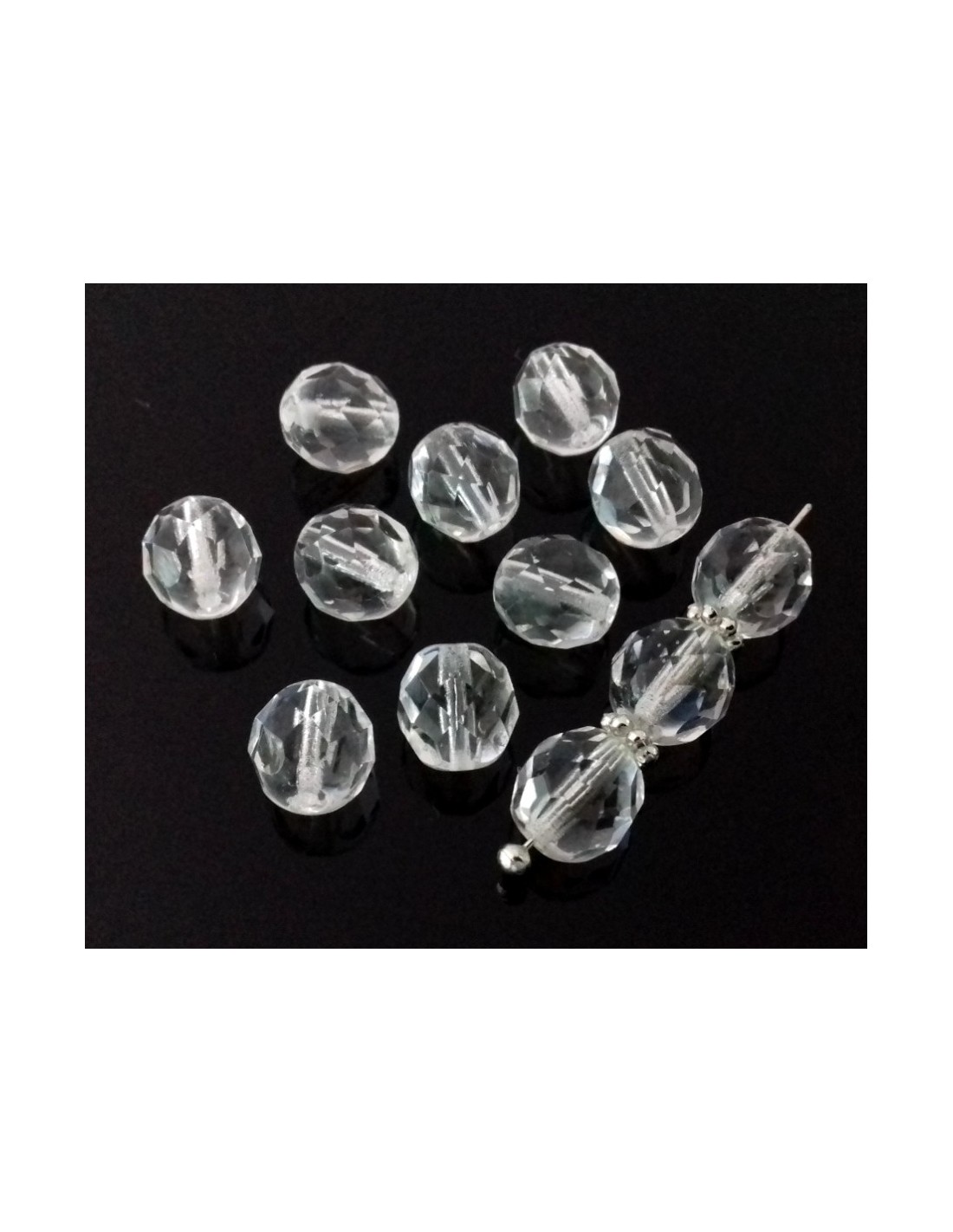 5 Margele Cehia sticla Fire Polish round 8mm - Clear